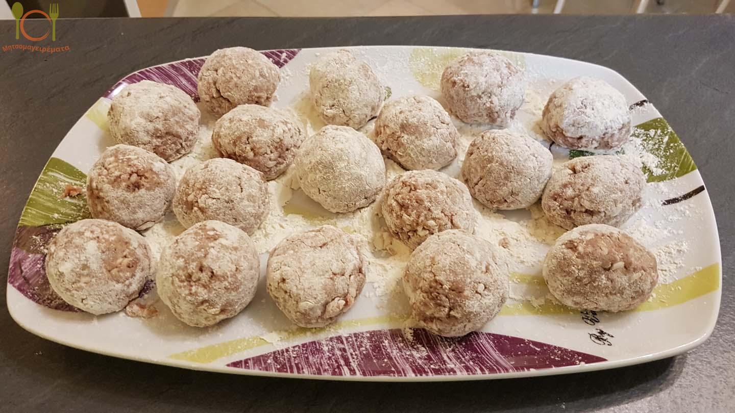 Σε ένα λεκανάκι βάζουμε τον κιμά, 1 κρεμμύδι, ρίγανη, αλάτι και 2 χούφτες ρύζι Καρολίνα. Τα αναμειγνύουμε καλά και φτιάχνουμε τα γιουβαρλάκια. Στο τέλος τα αλευρώνουμε!