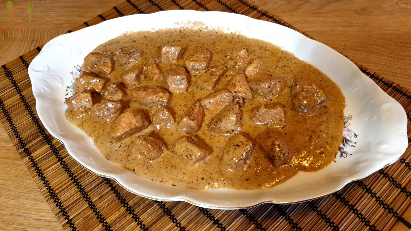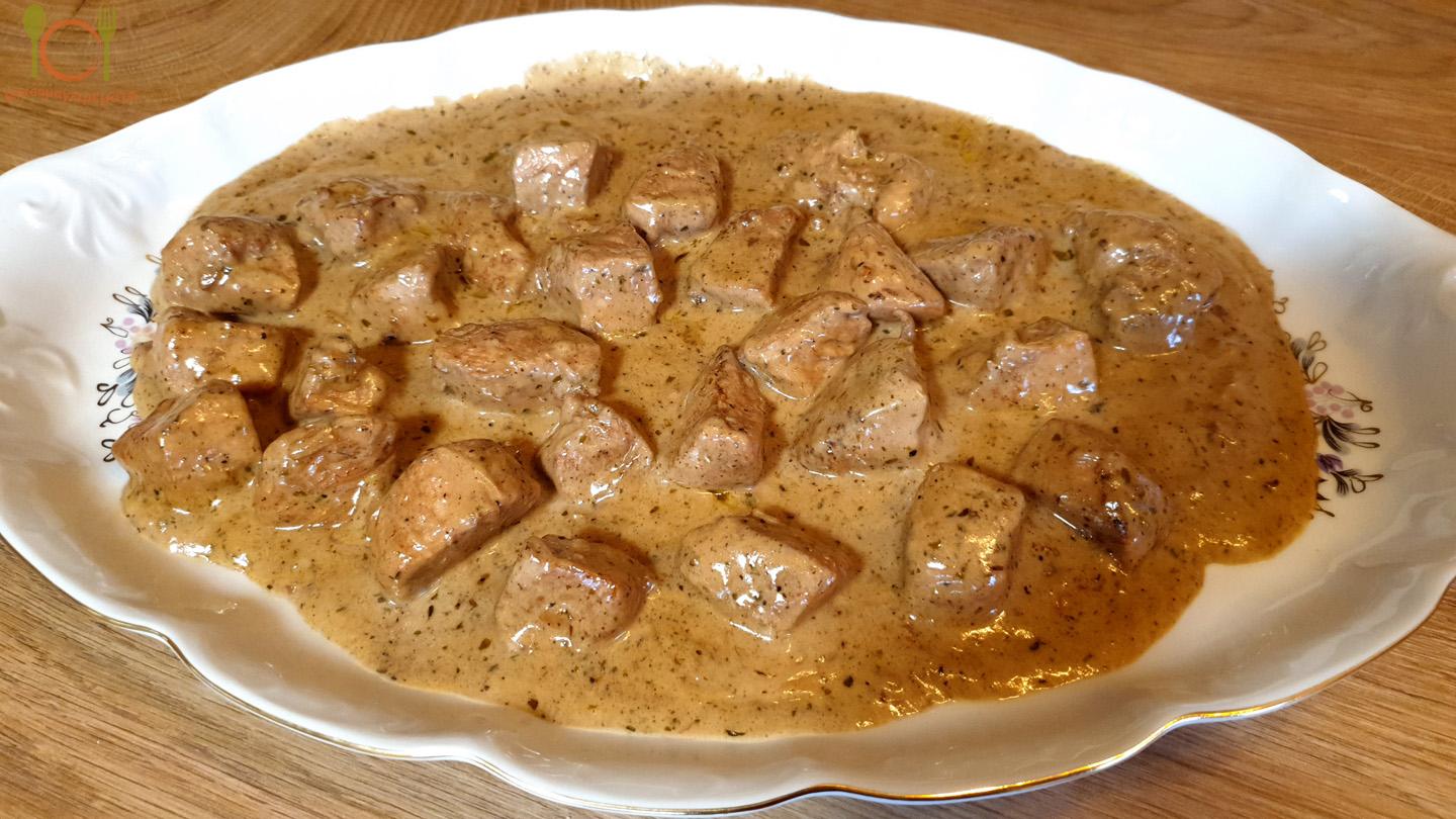 Συνταγή για τηγανιά κοτόπουλο με μαυροδάφνη και κρέμα γάλακτος.