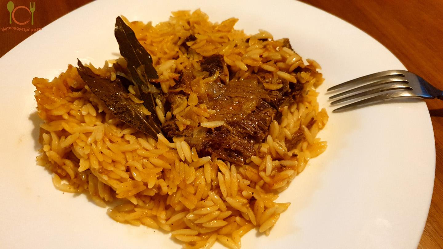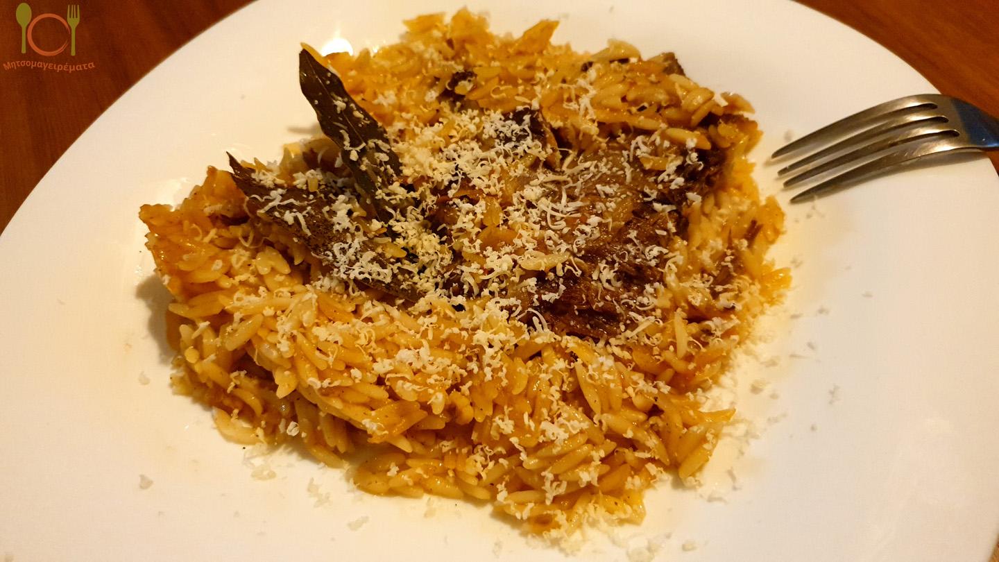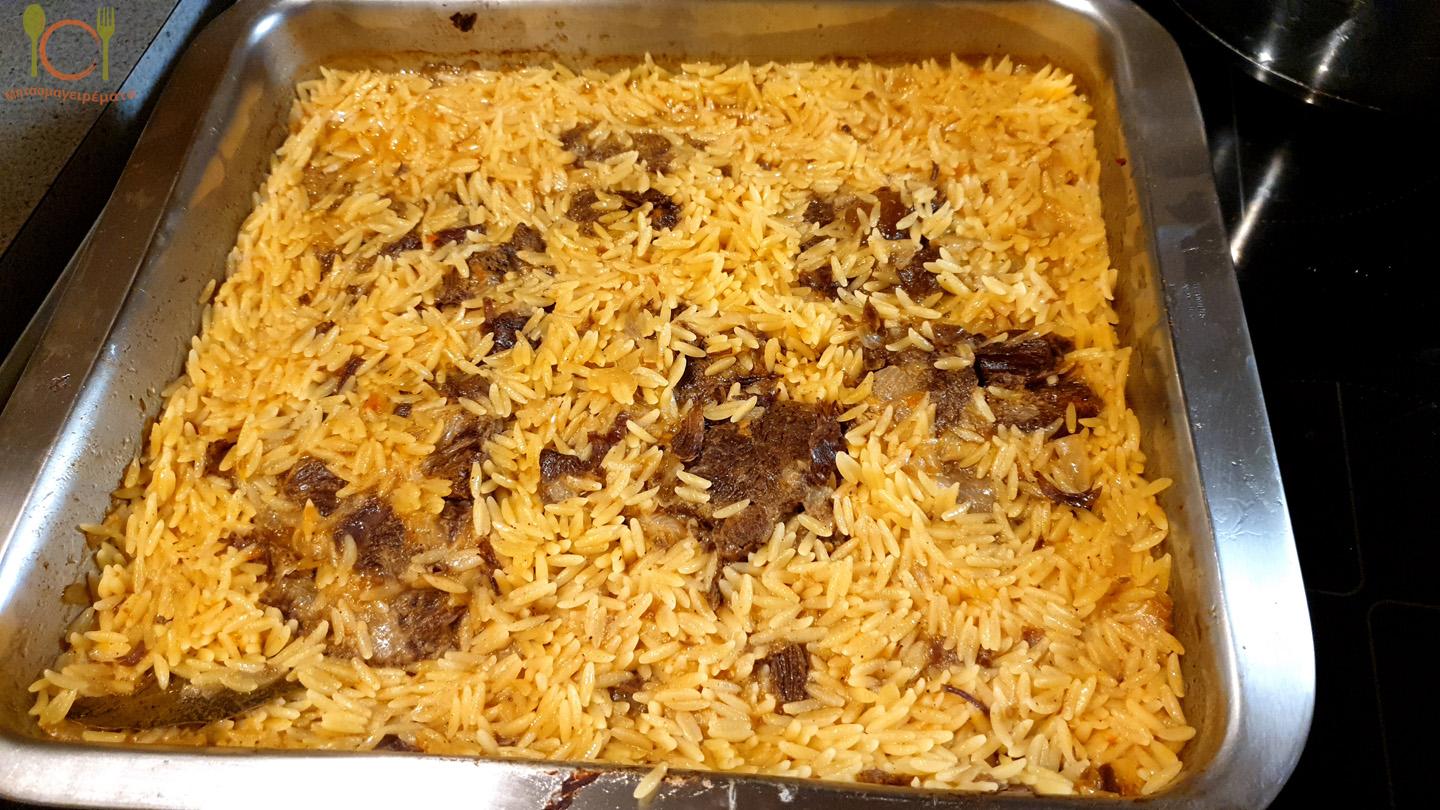 Σε ένα ταψί, βάζουμε όσο κριθαράκι θέλουμε και προσθέτουμε το κρέας. Η αναλογία θα είναι ένα φλιτζάνι κριθαράκι με περίπου δυόμιση φλιτζάνια ζωμό (τον ζωμό με την σάλτσα).