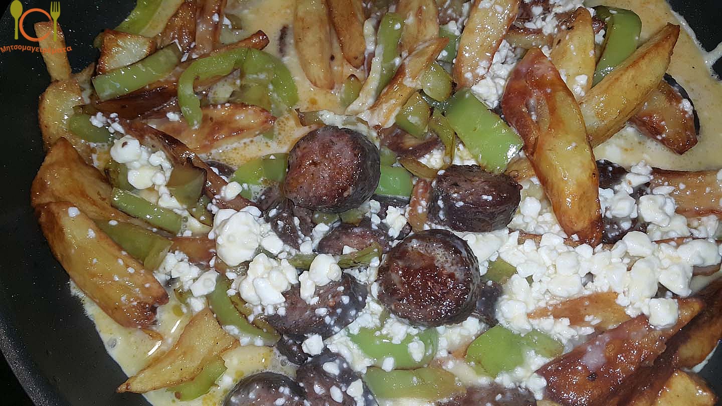 Συνταγή για ομελέτα με πατάτες, φέτα, πιπεριές και καυτερό χωριάτικο λουκάνικο!!!