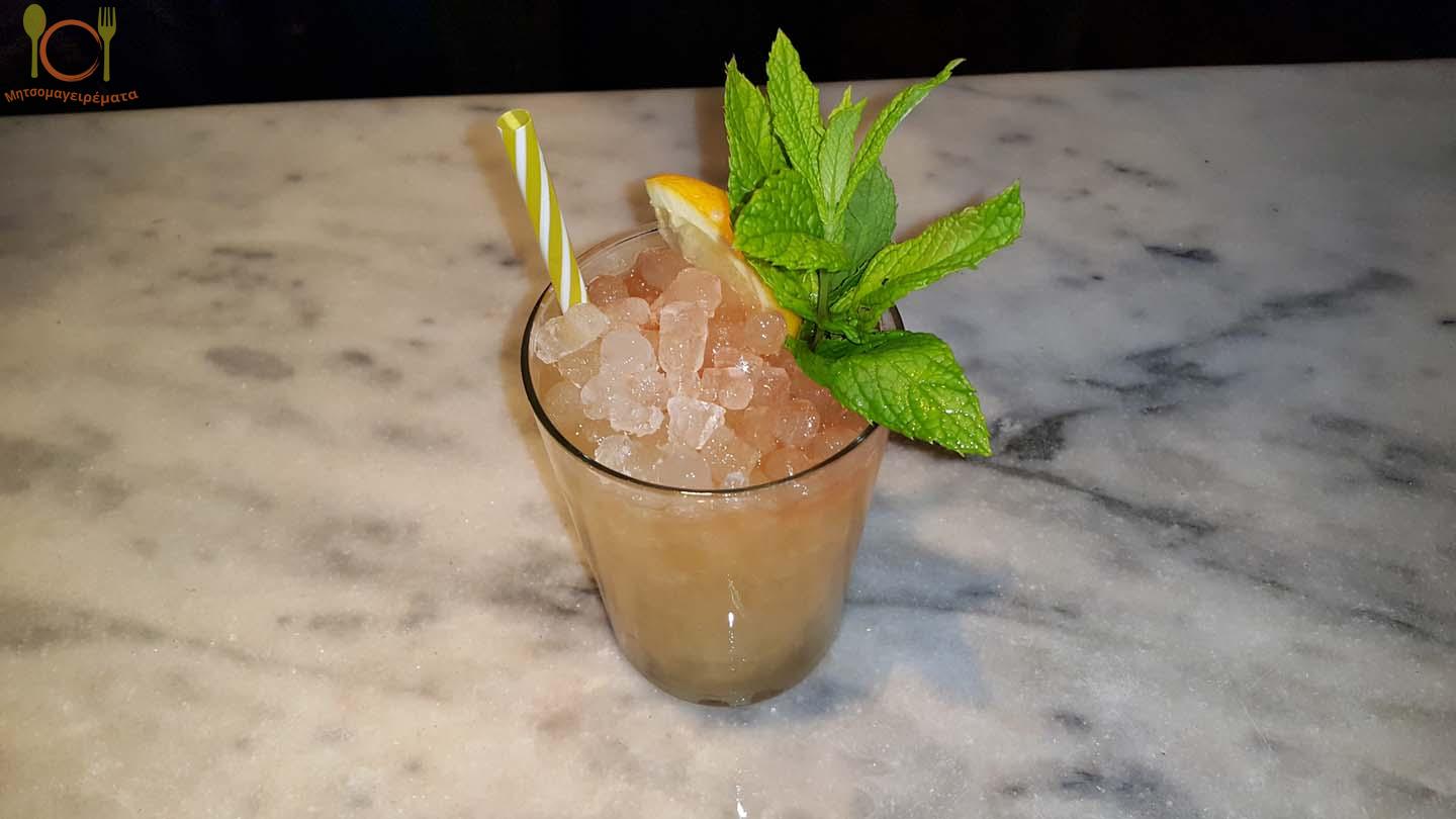 Για το Tiki θα ήταν ιδανικό να έχω τριμμένο πάγο. Για να τον δημιουργήσουμε, χρησιμοποιούμε ένα γουδί και μια πετσέτα. Βάζω τον πάγο μέσα και χτυπάω αρκετές φορές! Τον θρυμματισμένο πάγο το βάζουμε σε ένα highball ποτήρι. Στύβουμε μισό κόκκινο γκρέιπφρουτ περίπου 30ml. Προσθέτω 20ml λάιμ. Χρησιμοποιώ 50ml μαύρο, βαρύ ρούμι (στην περίπτωση μας ένα Plantation Dark Rum) και 20ml ελαφρύ λευκό ρούμι, (στην περίπτωσή μας ένα παιχνιδιάρικο Agricole J.M.). Προσθέτω 20ml πλούσιο σιρόπι ζάχαρης. Τα ανακατεύω, με ένα αναδευτήρα (τεχνική swizzle) το γεμίζω με Ginger ale και τοπάρω με αρκετές σταγόνες Angostura bitters. Στο τέλος στολίζω το ποτήρι με μια φέτα γκρέιπφρουτ ή ανανά, ή λαιμ και μια κορυφή δυόσμου.